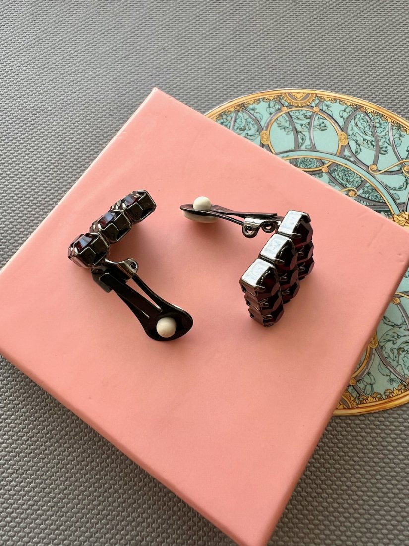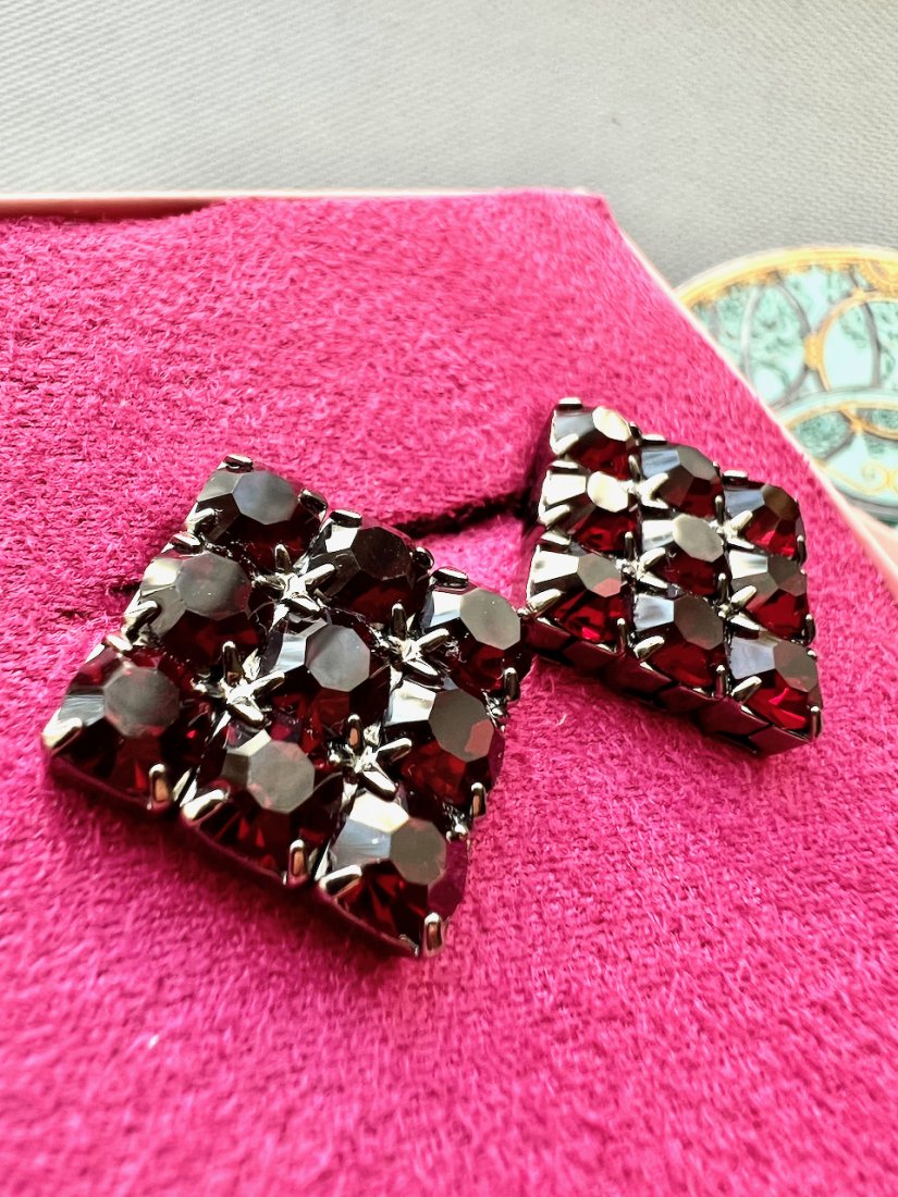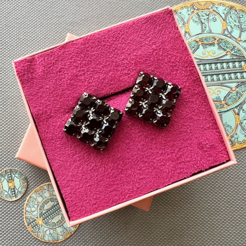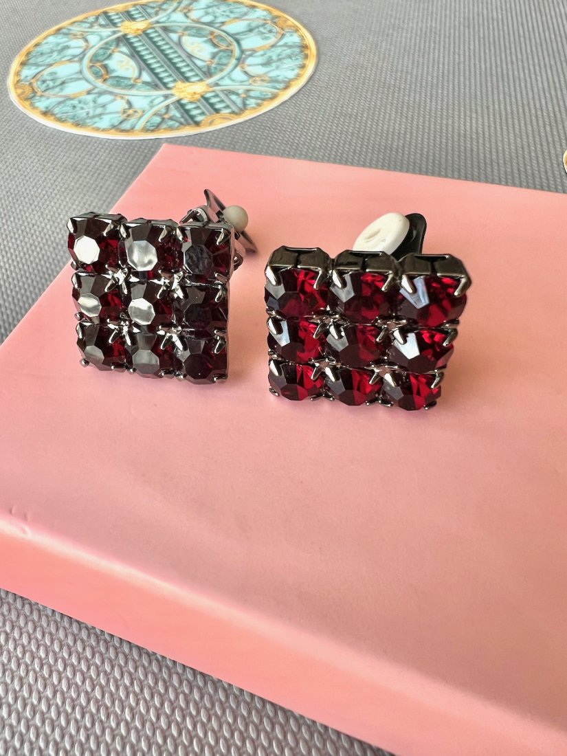 Italian Design - Wine Red Clips Earrings ❤ Wspaniałe klipsy ❤ Bardzo ciekawe duże klipsy wykonane w ciemnej oksydzie z kamieniami w kolorze czerwonego wina. Piękny projekt z klasą i wyczuciem dobrego stylu. Kwadratowa forma i ta czewrień kamieni, która pięknie i elegancko rozświetla się w świetle dodając wyjatkowego stylu.