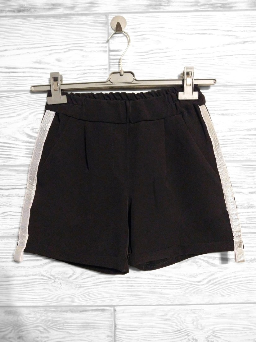Włoskie krótkie czarne spodenki ze srebrnym lampasem.