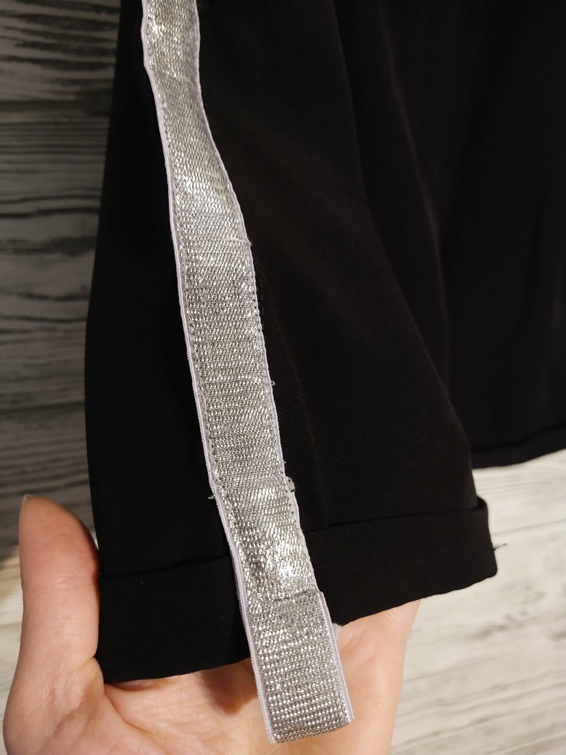Włoskie krótkie czarne spodenki ze srebrnym lampasem.