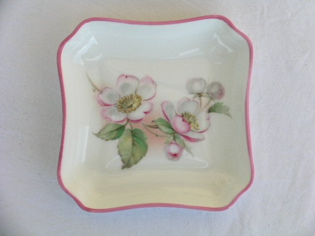 Poetyckia, romantyczna, delikatnością kwitnącej jabłoni zdobna niewielka forma porcelanowa, sygnowana Coalport. Nie tylko do buduaru, ale i do kuchni, na stół... 8 x 10 x 1,5 cm. Stan zachowania bardzo dobry.