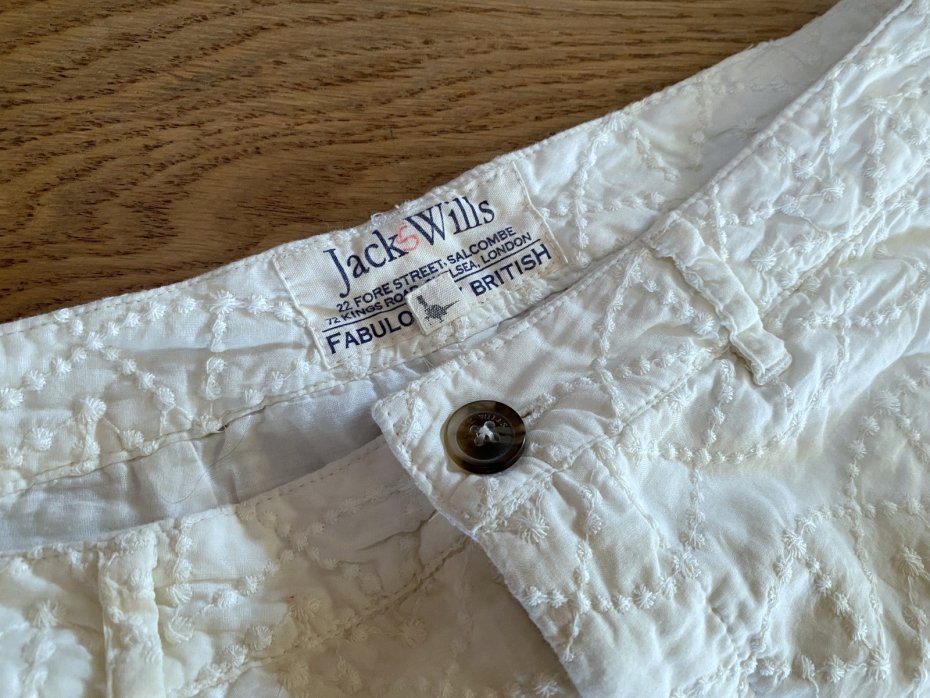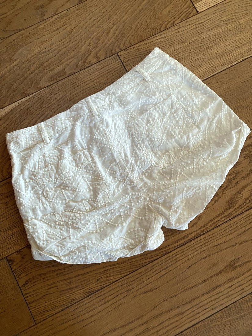 Bawełniane spodenki w kolorze ecru, zdobione haftem, stan bdb.