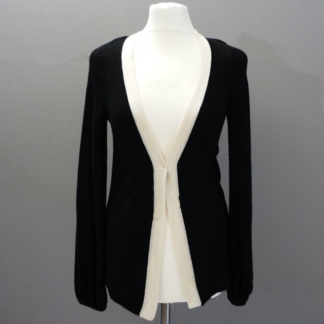 Klasyczny sweterek w stylu Chanel w formie niezapinanej narzutki