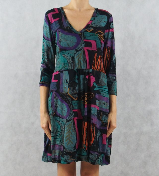 Sukienka bawełniana ze świetnym wzorkiem - w stylu Desigual. Rękawek 3/4. W dolnej części podszewka.