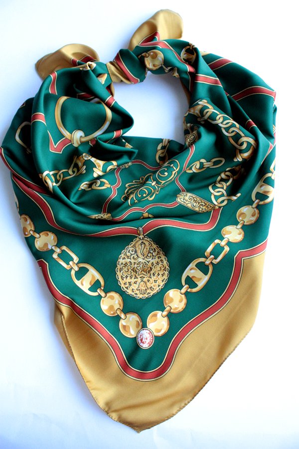 Włoska duża chusta we wzory w stylu domu mody HERMES.