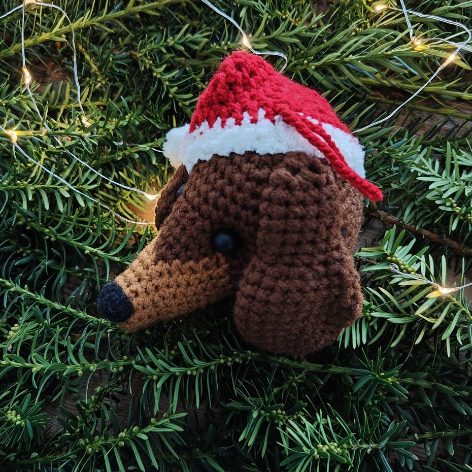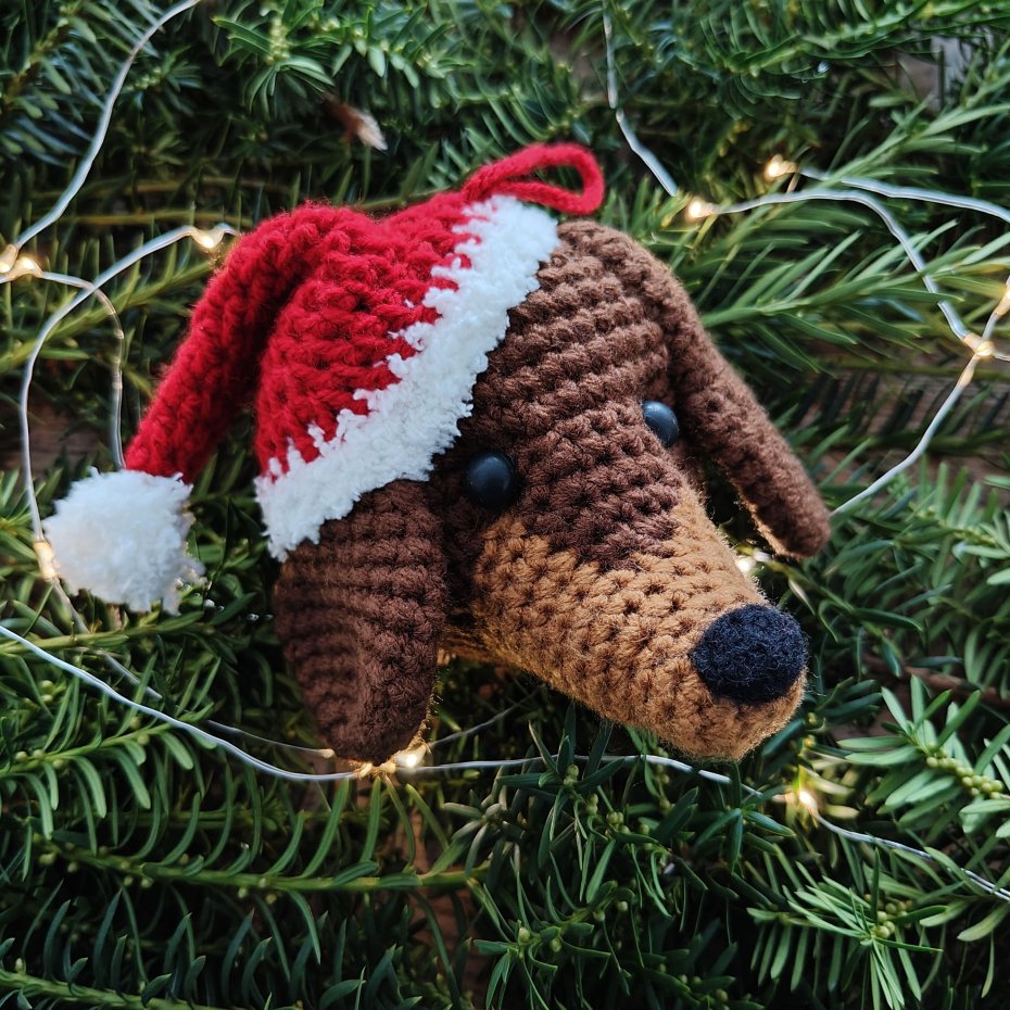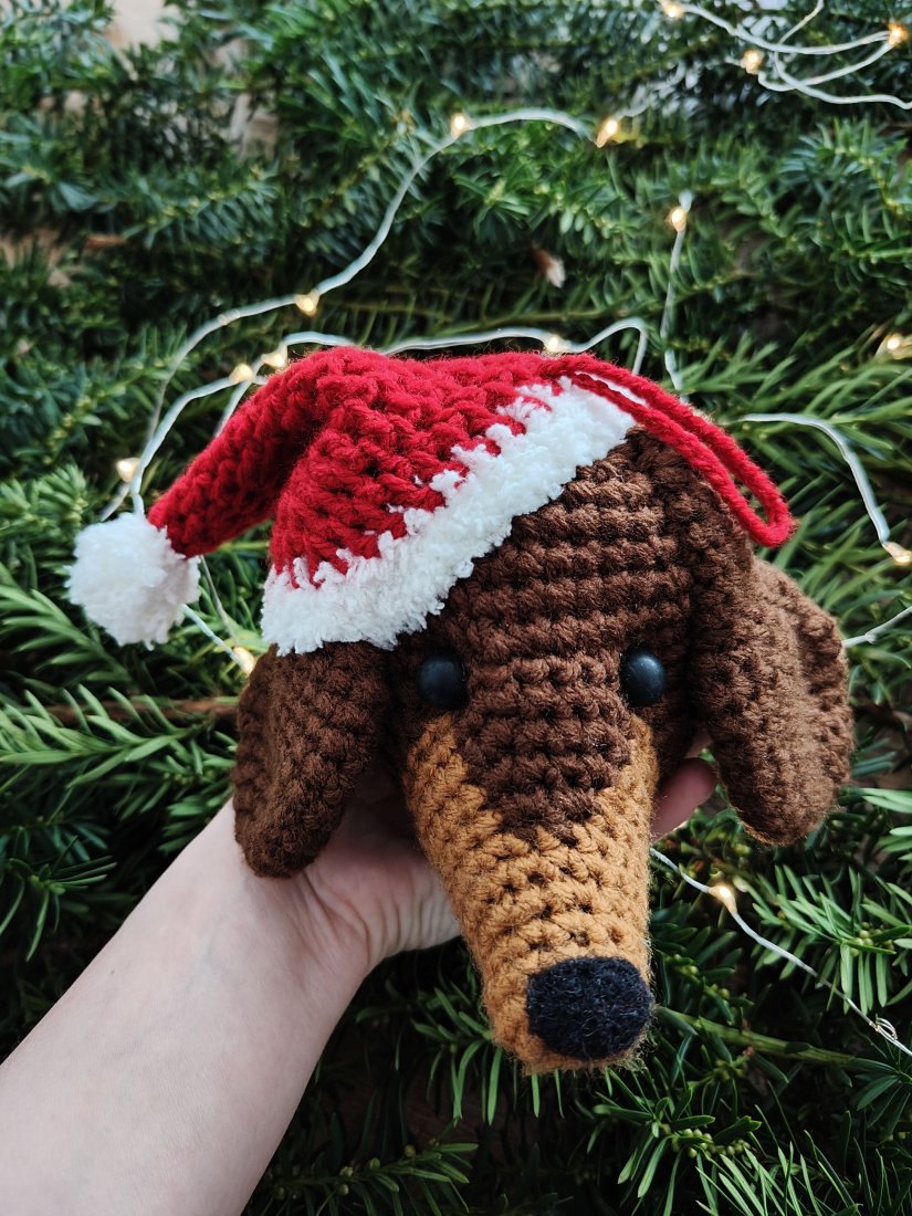 Szydełkowa ozdoba świąteczna w kształcie jamnika to niepowtarzalny świąteczny drobiazg dla miłośników psów!
