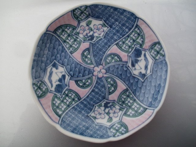 Szlachetnie porcelanowa Miseczka-Talerzyk. Sygnowana. Szlachetna,dzwięcząca porcelana i mandaliczne orientalne zdobienie na porcelanowej bieli. Wykończenie szkliwa błyszczące. Ciekawy niebieski, zielenie i pastelowy róż. Lekko wyczuwalne pod dłonią graficzno - florystyczne mandaliczne zdobienie Jest też obrazek z rybakiem ;) Rant przypomina płatki kwiatu. Idealna do kolekcji,codziennej celebracji i na prezent :)