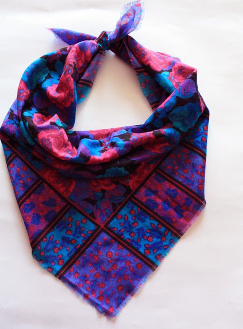 Chusta w odcieniach fioletu, turkusu i fuksji. Made in Japan. Materiał: akryl.
