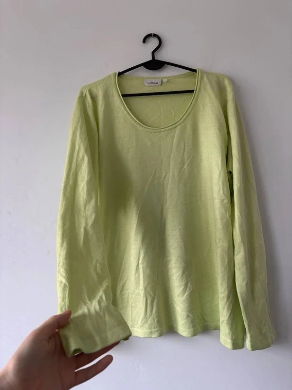 Delikatny jasnozielony sweter marki Canda z przyjemnej w dotyku, naturalnej tkaniny.