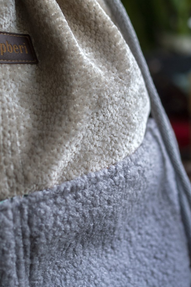 W środku plecak posiada kieszeń zapinaną na suwak. Wykończony jest bawełnianą podszewkę w kapibary.