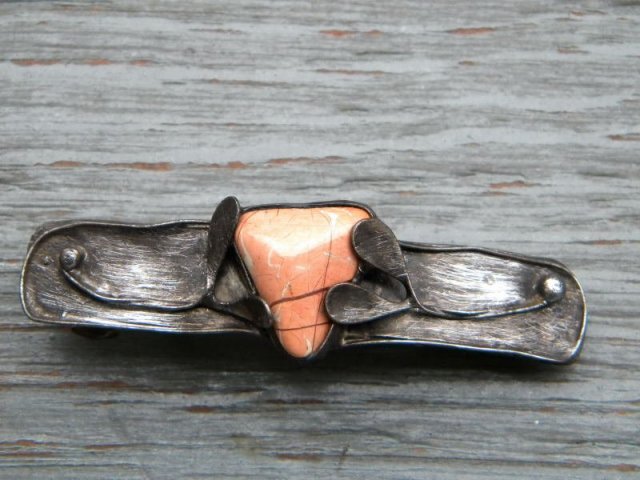 klamra do włosów z jaspisu oprawionego w ocynowaną miedz.