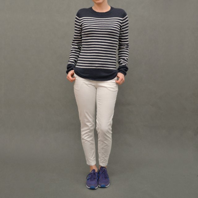 Mięciutki sweter w biało granatowe paski z angorą.