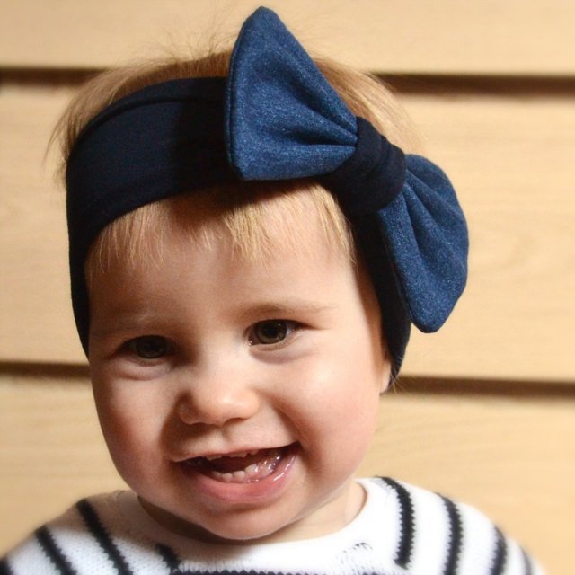 Elastyczna opaska z dzianiny w kolorze granatowym oraz granatowego jeansu.