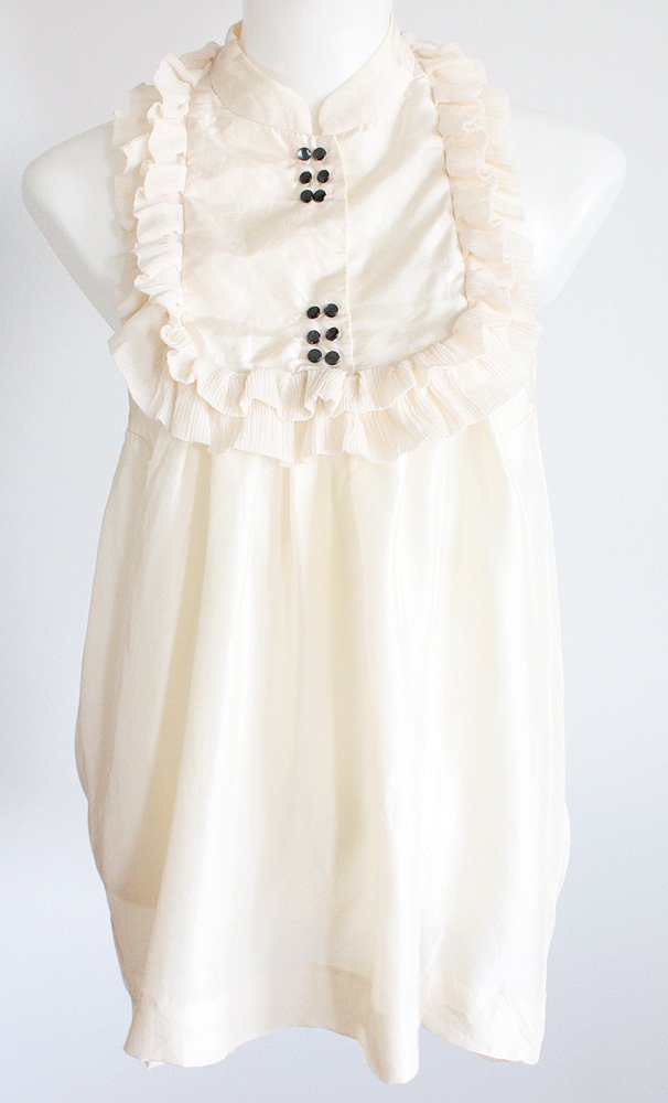 Przedstawiam Państwu jedną z najpiękniejszych bluzek jakie widziałam, w pełni zasługuje na tytuł z metki - Lamborghini style :-). Wykonana z czystego jedwabiu o dwóch fakturach (gładki, elegancki w większości bluzki i leciutko marszczony, przeźroczysty na falbanach). Zapięcie na eleganckie, czarne, maleńkie guziczki. Z tyłu pięknie odsłania plecy, na karku również zdobienie koronką. Luksusowa marka Malene Birger. Produkt absolutnie luksusowy, po którym od razu widać doskonały gatunek i gust. Kolor to elegancki krem.