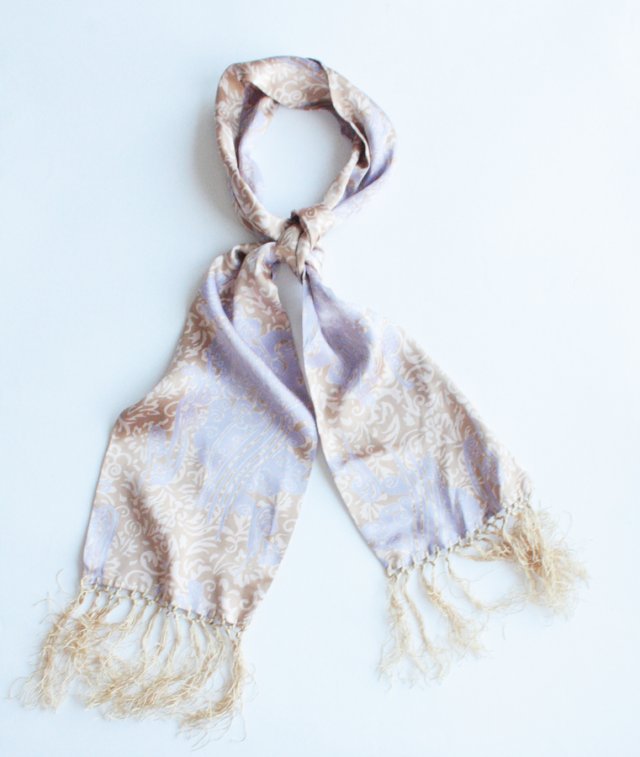 Piękny szal z frędzlami duńskiej marki BAUM UND PFERDGARTEN. Materiał oceniam na jedwab naturalny.