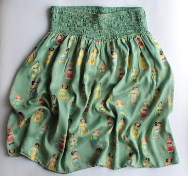 Przedstawiam Państwu szalenie oryginalną, ekskluzywną spódnicę Free For Humanity. Model: Submariner. Napis: hand finished (moim zdaniem chodzi tu o malunki). Materiał to 100% jedwab. Na górze wszyto gumki. Z przodu i z tyłu inny wzór. Naprawdę wyjątkowa rzecz do niebanalnej szafy.