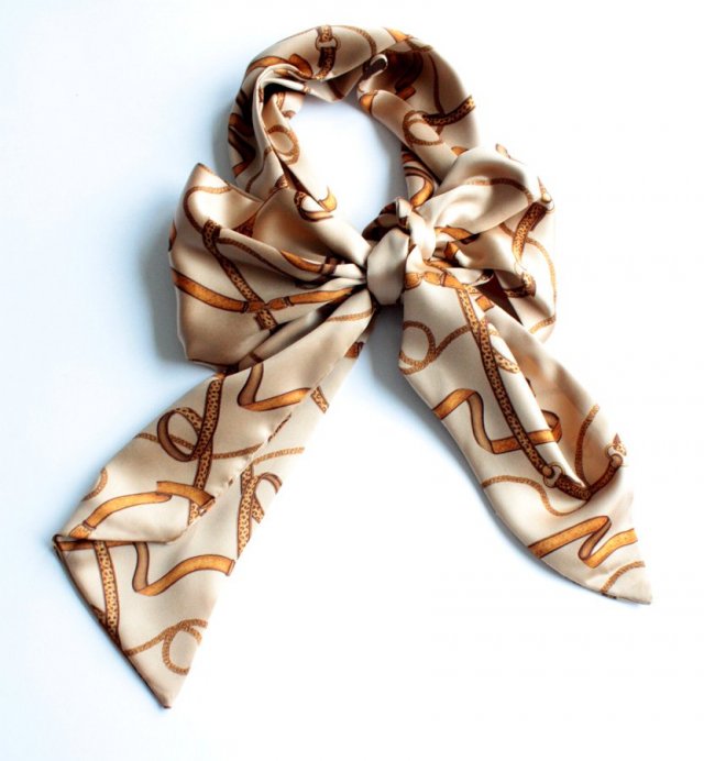 Podwójnie zszyty, elegancki szal w stylu domu mody HERMES. Materiał to prawdopodobnie jedwab.
