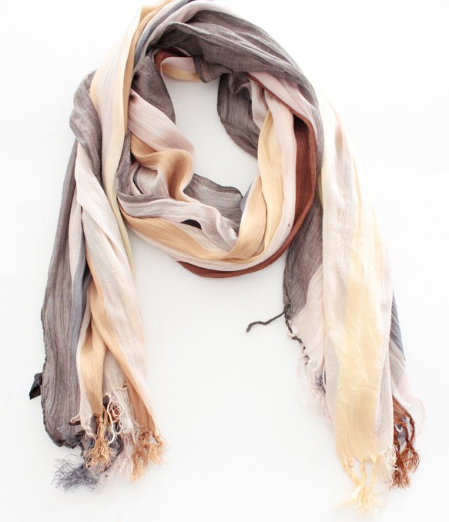 Miękki, duży szal w pasy wykonany z eleganckiej tkaniny (jedwab i bawelna).