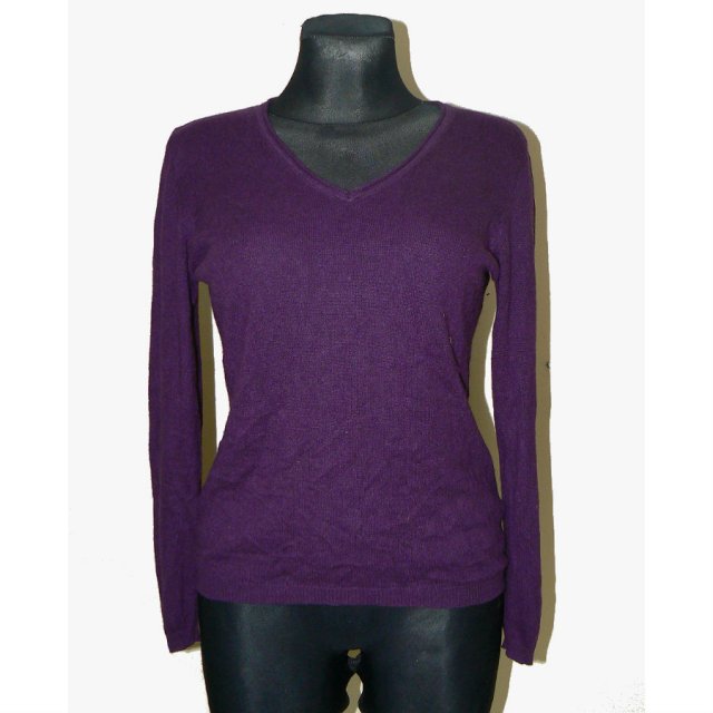 Śliwkowy sweterek od Cecilia Classics. Klasyczny krój z dekoltem w serek. Miły w dotyku materiał dopasowujący się do ciała.