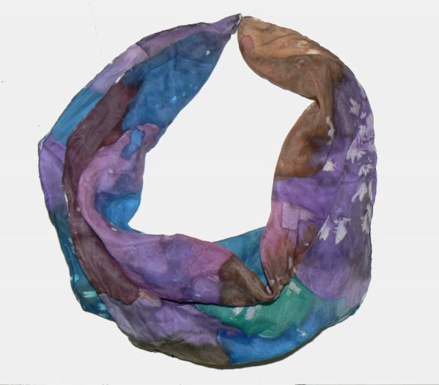 Piękna apaszka w żywych kolorach, ręcznie malowany jedwab, rolowane brzegi. Zwiewna i delikatna.