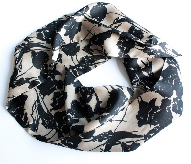 Elegancki, podwójnie zszyty szal wykonany z jedwabiu.