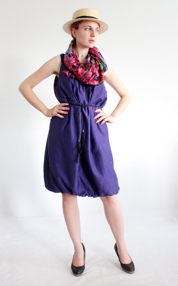 Efektowna sukienka w kolorze mocnego fioletu marki SEL by Peppercorn. Sukienka na dole może być układana jako bombka (wszyta guma). Pięknie ozdobiony dekolt.