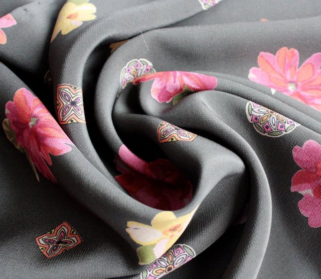 Zwiewny, jedwabny szal w kwiatowe wzory.