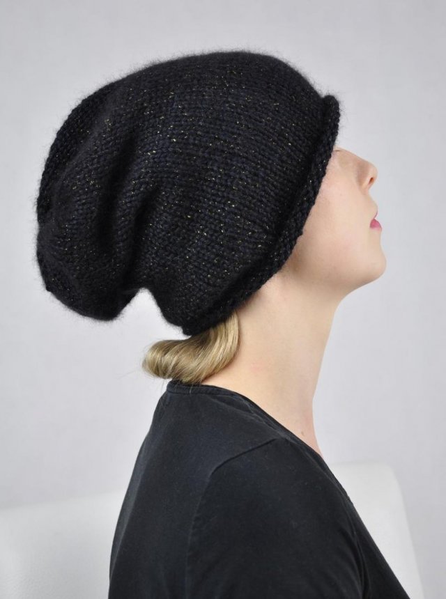Wyjątkowa, elegancka krasnalowa czapka, wykonana z mixu naprawdę ekskluzywnych włóczek (stąd jej cena). Jest średniej grubości, bardzo miękka, jedwabiście przyjemna w dotyku. Rozmiarowo na głowę o obwodzie 55-57cm, głębokość 29cm.