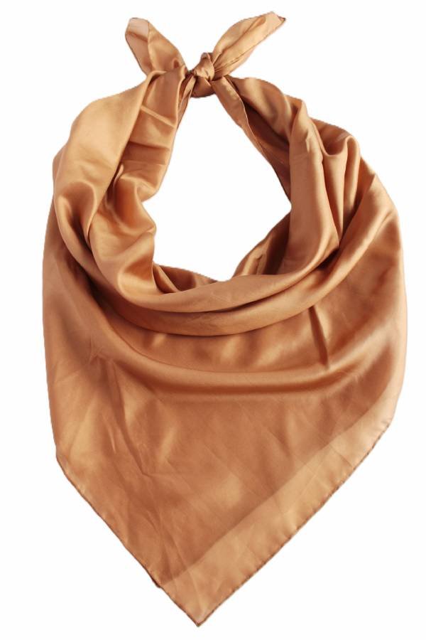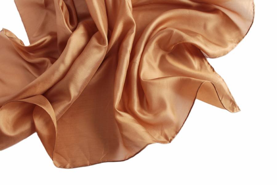 Duża, efektowna chusta vintage w ciemnym odcieniu beżu, wykonana z jedwabiu.