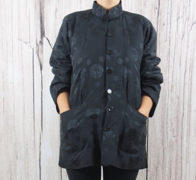 Kurteczka w orientalnym stylu. 100% czysty jedwab. Kurtka lekko ocieplana. Z przodu kieszenie. Zapinana na zatrzaski.