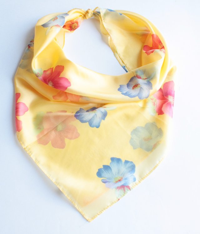 Subtelna chusta w kwiatowe wzory wykonana w mojej ocenie z jedwabiu.