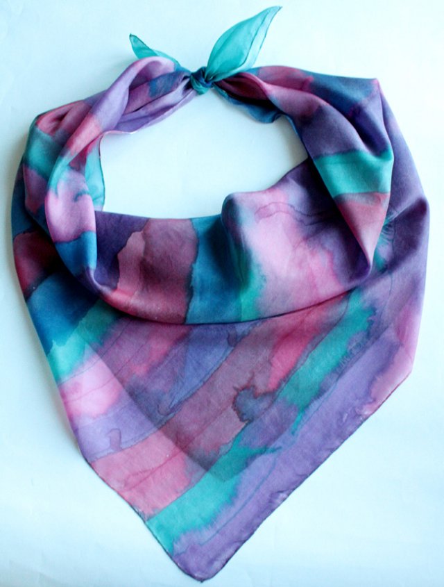 Piękna, malarska chusta wykonana prawdopodobnie z jedwabiu.