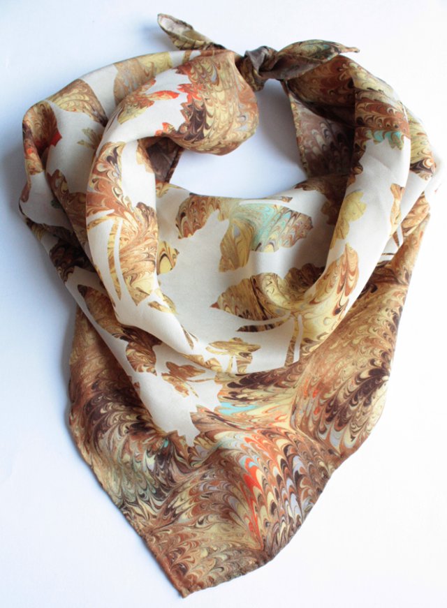 Zwiewna, przepiękna chusta w miodowych kolorach. Materiał oceniam na jedwab.