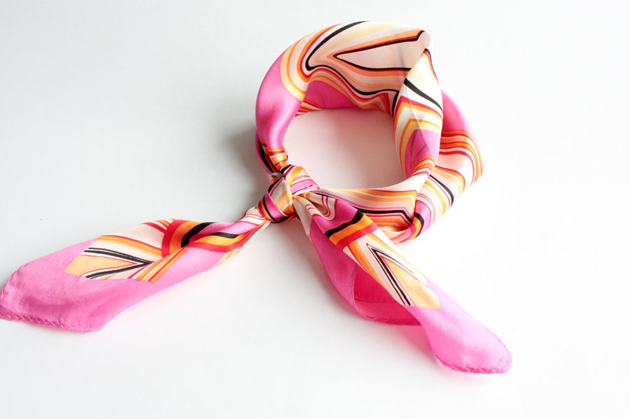 Oryginalna, wzorzysta chusta wykonana w mojej ocenie z jedwabiu.