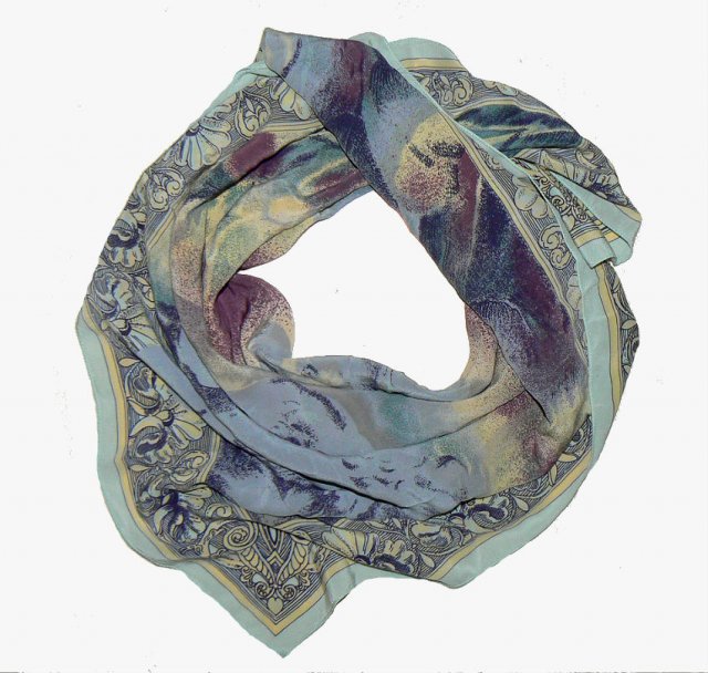 Duża chusta w pastelowych barwach. Lejący materiał, miękko się układa.