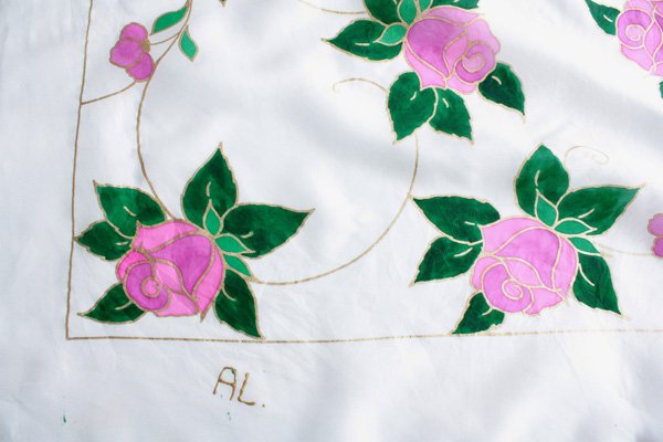 Przepiękna, sygnowana chusta, najprawdopodobnie ręcznie malowana. Materiał oceniam na jedwab.