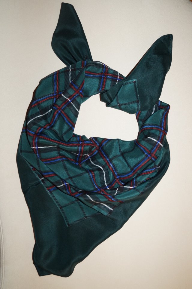 Francuska jedwabna chusta w kratę, kolory: granat, zieleń, biel, bordo i błękit