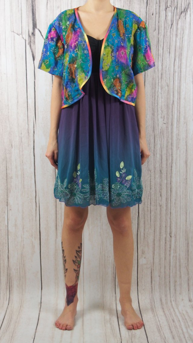 Śliczne tęczowe bolerko plus size. Idealny dodatek do sukienek. Jedwabne, na podszewce z cienkiego bawełnianego płótna.