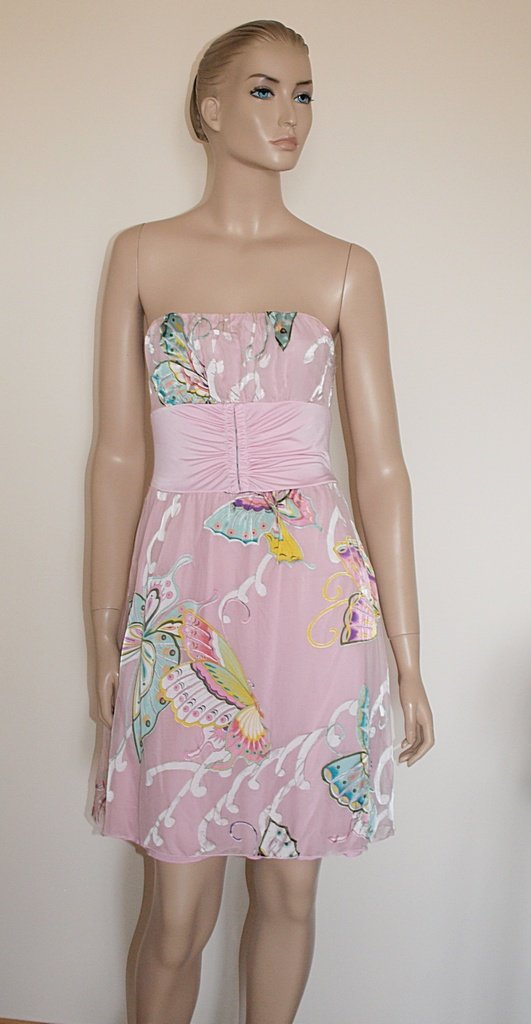 śliczna sukienka marki quiz, w bieliźnianym stylu. Dwie warstwy zewnętrzny materiał 100% transparentny jedwab. wkładana bez zamka. w pasie zapięcie na bieliźniane haftki. Stan bardzo dobry. rozmiar z metki 12, na manekinie o rozmiarze 38. Podaję wymiary mierzone na płasko;