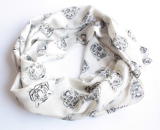 Uroczy biały szal w wyjątkowe, niespotykane wzory - różne tygrysie pyszczki