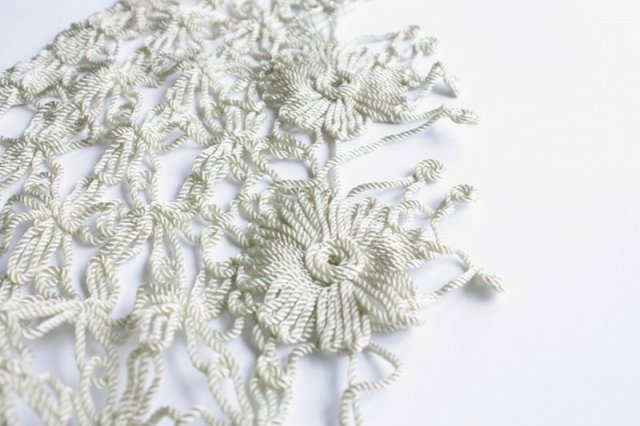Niezwykła, bardzo kobieca chusta wykonana z jedwabnego cienkiego sznurka.