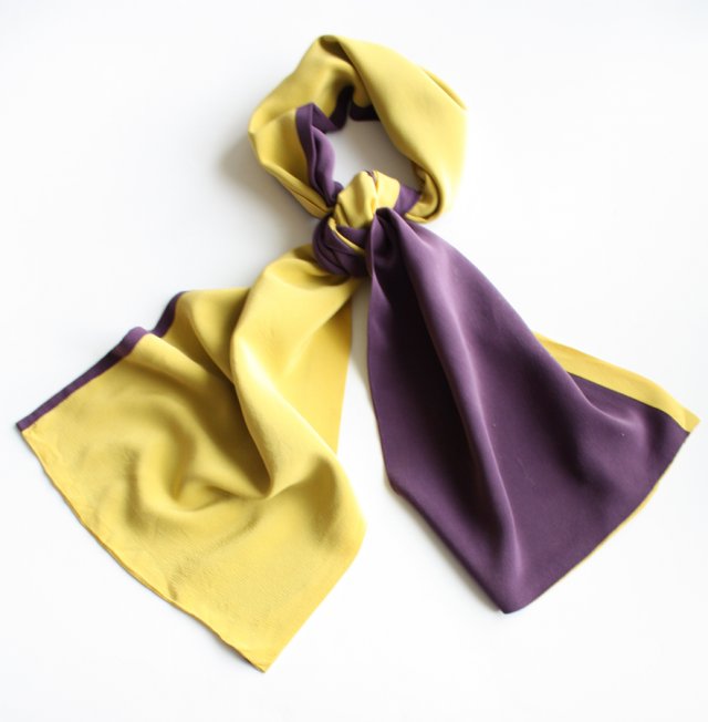 Dwustronny, efektowny szal, który można nosić na kilka sposobów. Z jednej strony fiolet, z drugiej-limonkowy wpadający w oliwkę.