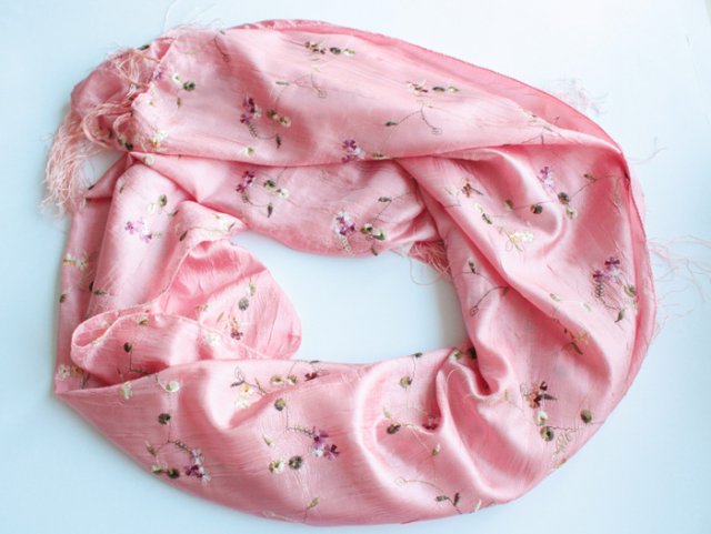 Piękny, duży, haftowany szal w kolorze ciepłego różu.
