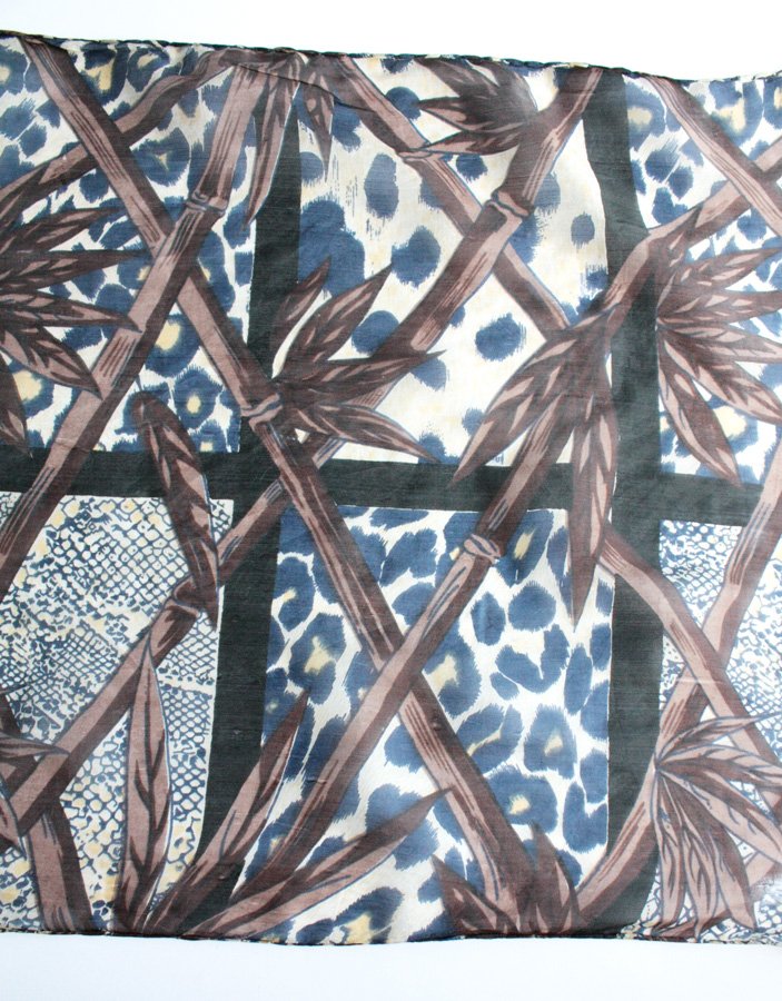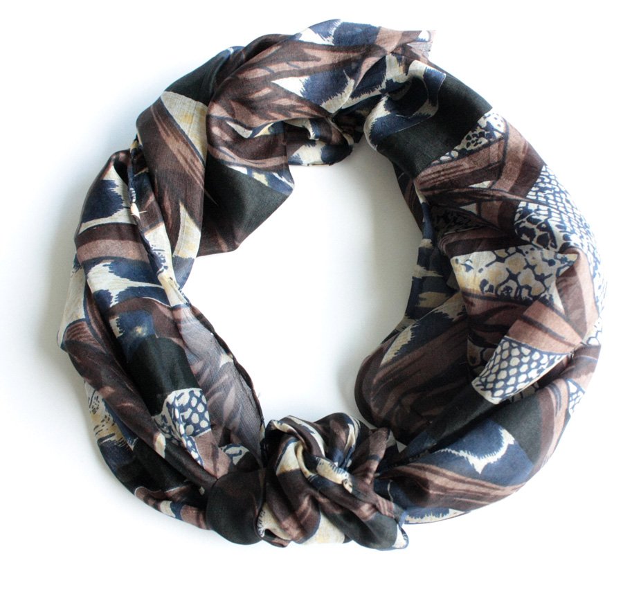 Zwiewny, niewielki szal z delikatnego materiału, który oceniam na jedwab. Szal będzie pięknie prezentował się w zestawieniu z koszulową bluzką lub jako opaska na głowę.