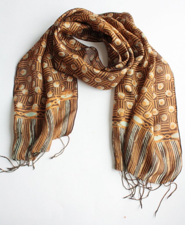 Oryginalny szal we wzory wykonany w mojej ocenie z jedwabiu.