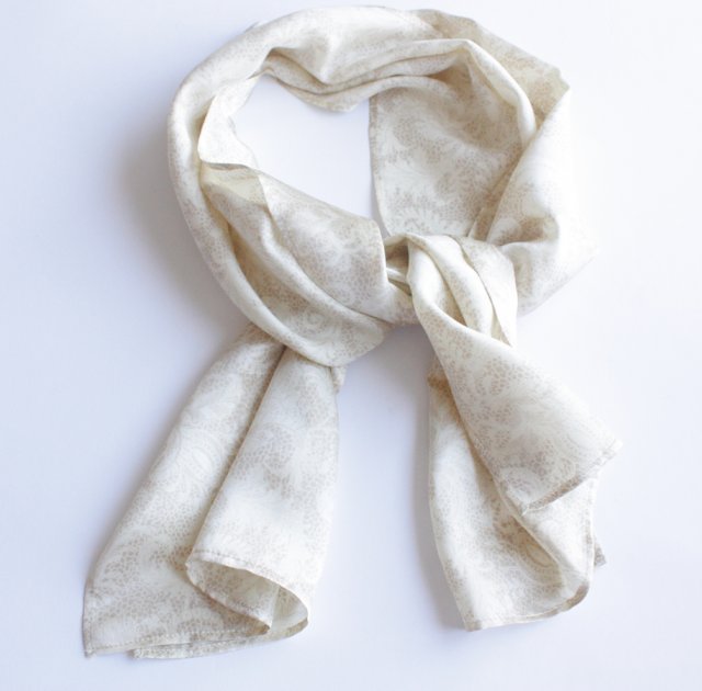 Szal w subtelne beżowe, szalenie eleganckie wzory. Materiał oceniam na jedwab.