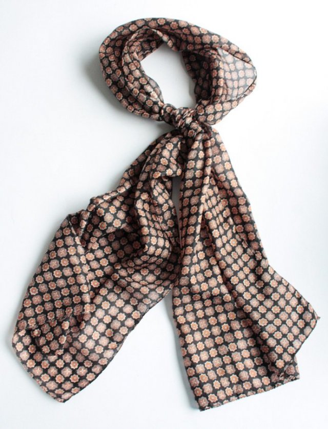 Zwiewny szal w subtelne wzory. Wykonany prawdopodobnie z jedwabiu.