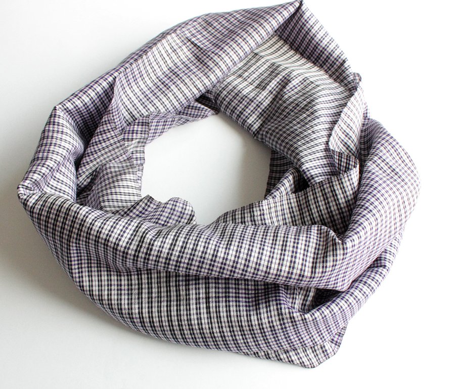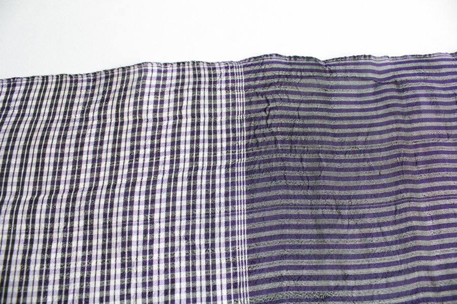 Duży szal w kratkę wykonany prawdopodobnie z jedwabiu.