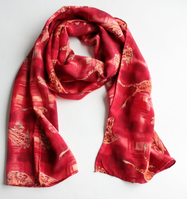 Uroczy szal w żabki. Materiał to prawdopodobnie jedwab.