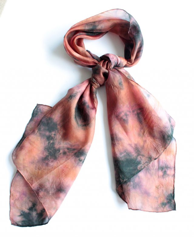 Zwiewny szal w przelewanych kolorach. Materiał jest bardzo delikatny, cienki, oceniam go na jedwab naturalny.
