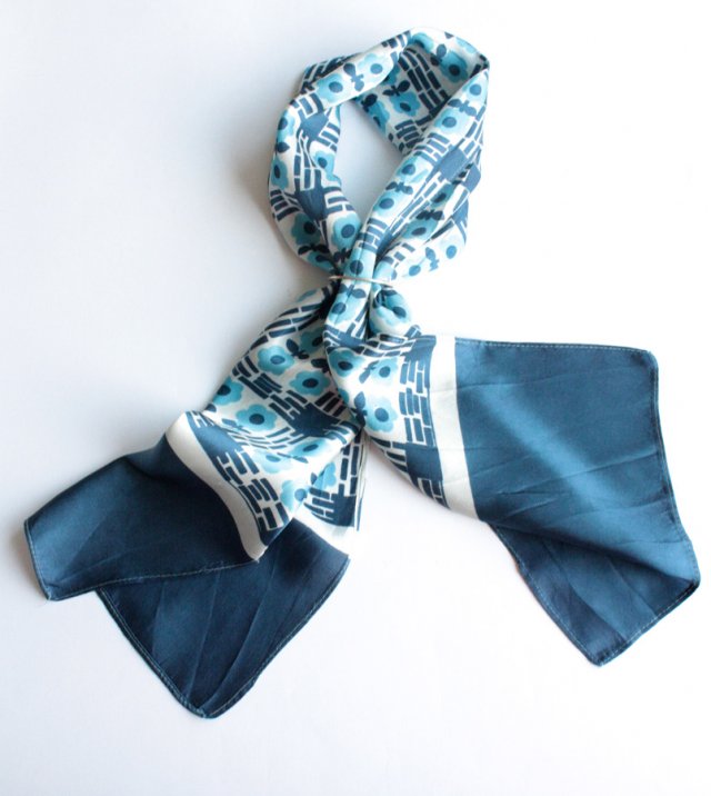 Zwiewny szal w odcieniach morza. Materiał to prawdopodobnie jedwab naturalny lub syntetyczny.